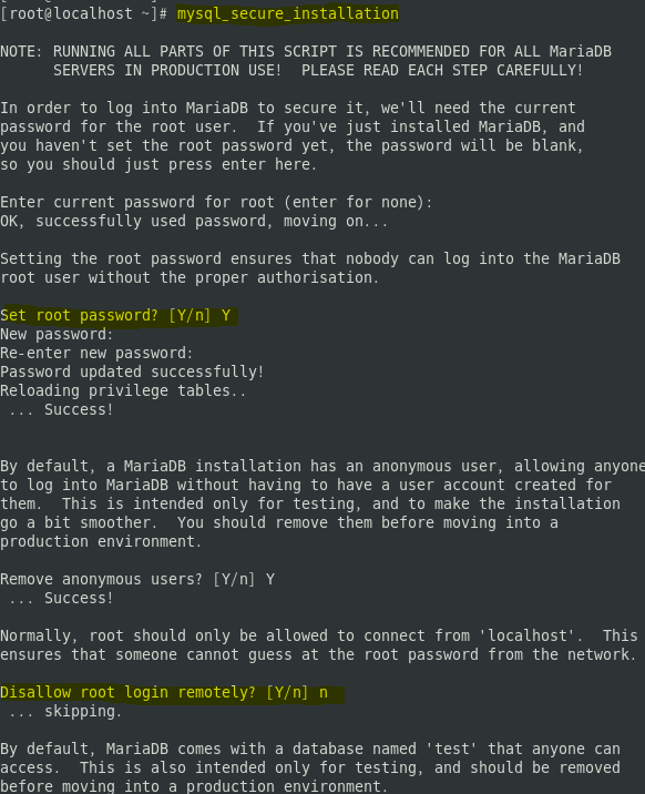( # mysql_secure_installation )