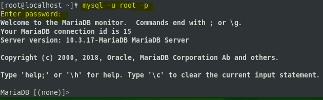 ( # mysql -u root -p )