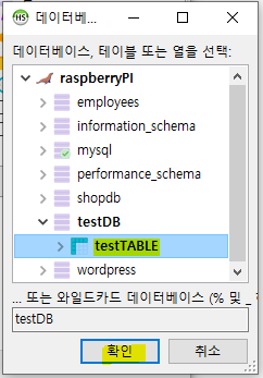 객체 추가를 클릭 후 testDB의 testTABLE을 선택합니다.