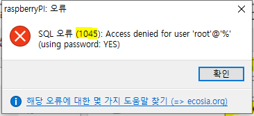 외부PC에서 HeidiSQL로 서버로 접속한 경우 저장 시 SQL (1045)오류가 날 수 있습니다.