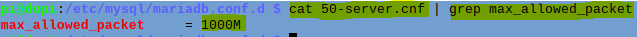 올릴 데이터파일이 용량이 높다면 O/S별 아래 위치에서 config파일을 찾아 내용에 "max_allowed_packet = 1000M"를 추가 또는 수정해줘야 합니다. (권한있는 계정 or root로 수정)