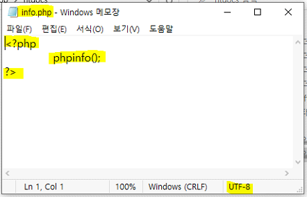 저는 info.php 라는 이름으로 파일을 만들고 아래 코드를 입력했습니다.