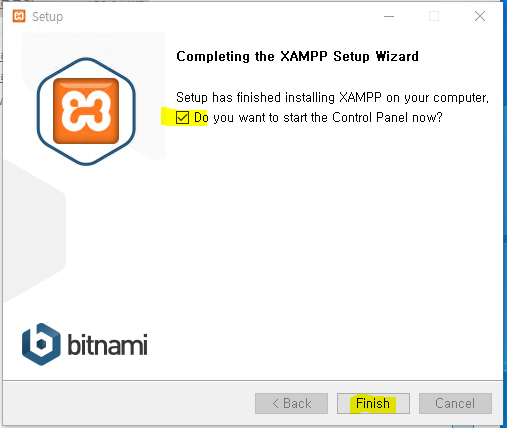 설치가 완료되면 컨트롤 판네를 지금 열겠냐는 물음에 체크를 하고 피니쉬를 클릭합니다.