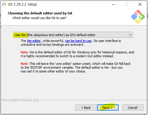 기본값으로 vim이 선택되어 있습니다. 그대로 넥스트를 클릭합니다.