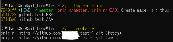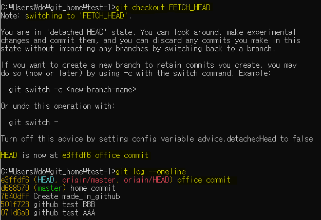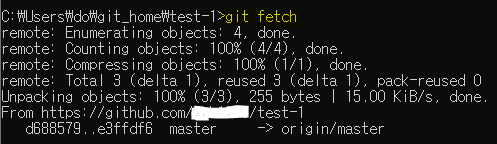 이제 git_home\test-1 폴더에서 git fetch 명령을 입력합니다.
