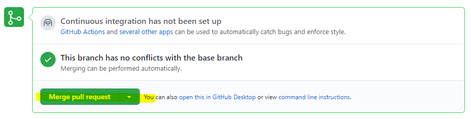 내용에 문제가 없다면 Merge pull request를 클릭하고 Confirm merge도 클릭합니다.