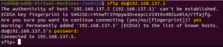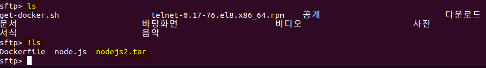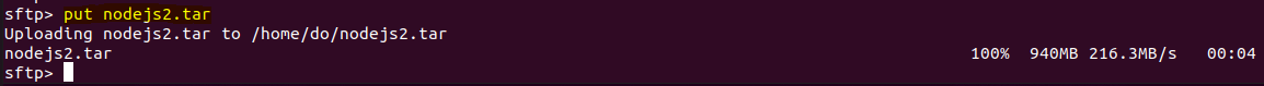 sftp> put nodejs2.tar
