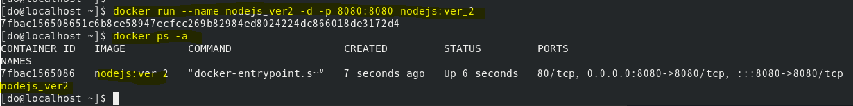 $ docker run --name nodejs_ver2 -d -p 8080:8080 nodejs:ver_2