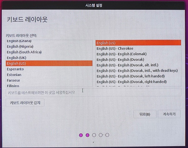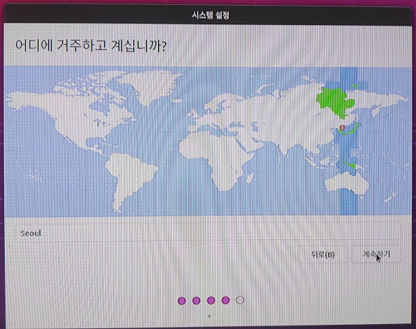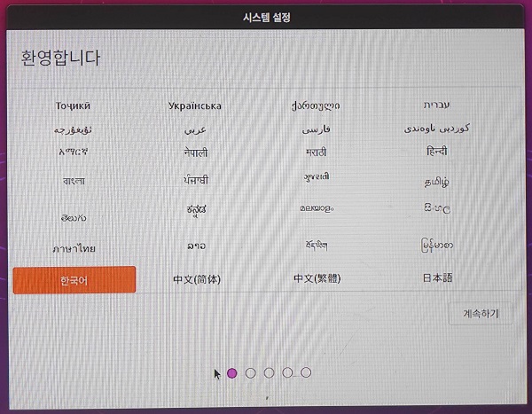 HDMI 연결 후 부팅을 하면 GUI 세팅 화면에서 언어, 키보드, 무선 네트워크, 거주 위치를 선택해야 합니다.