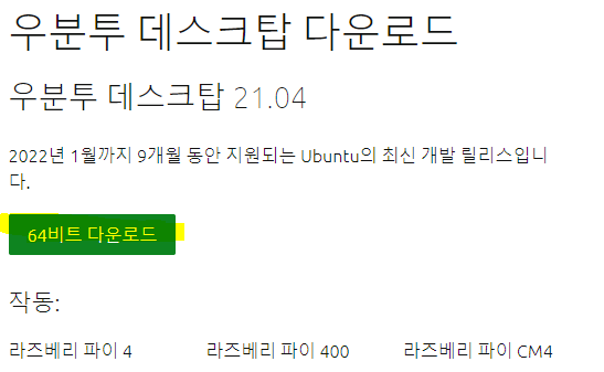 저는 64bit 최신 버전인 데스크톱 21.04 버전을 받았습니다. 22년 1월까지밖에 지원하지 않는 버전이지만 그때가 되면 다음 버전으로 업데이트하려고 합니다.
