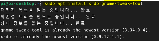 다음은 우분투 데스크톱을 설치한 이유인 GUI를 원격으로 붙어서 사용하기 위해 xrdp를 설치해야 합니다.