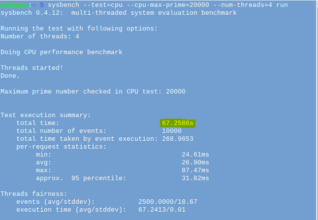 $sysbench --test=cpu --cpu-max-prime=20000 --num-threads=4 run