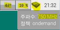 현재 CPU 작동 클럭은 마우스를 "CPUFreq 프론트엔드" 플러그인에 올려 놓으면 뜹니다.