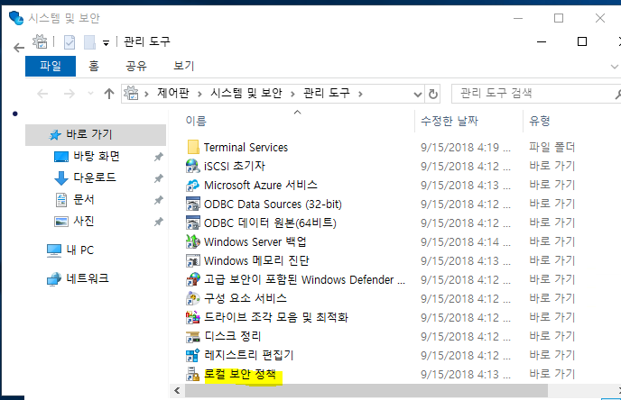 - 새창으로 관리도구가 열리면 로컬 보안 정책을 더블클릭하여 실행합니다.