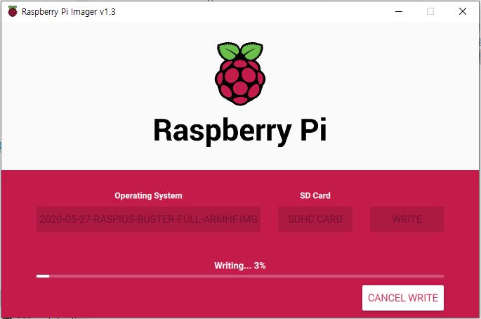 라즈베리파이 OS를 마이크로 SD카드에 굽기를 시작합니다.