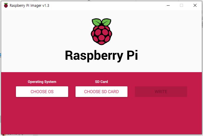 라즈베리 파이 imager를 실행한 후 CHOOSE OS를 클릭합니다.