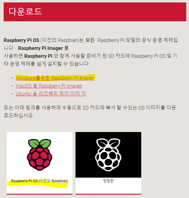 라즈베리파이 홈페이지 다운로드로 접속하여