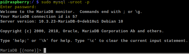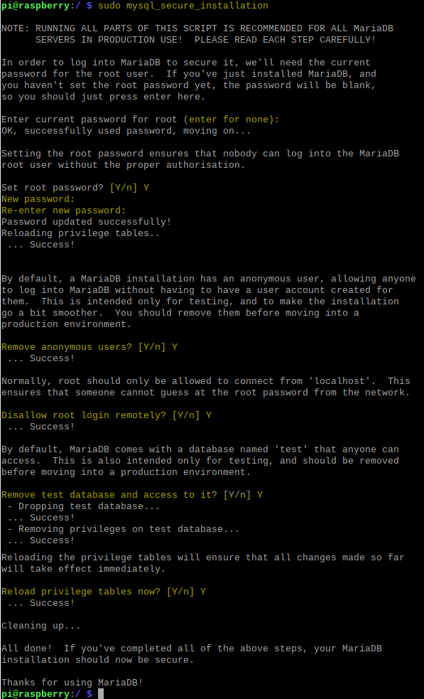 pi@raspberry:/ $ sudo apt-get install mariadb-server php-mysql -y