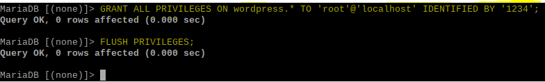 GRANT ALL PRIVILEGES ON wordpress.* TO 'root'@'localhost' IDENTIFIED BY '원하는root비밀번호';
