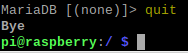 이후 quit 명령어를 넣어 라즈베리파이 쉘로 빠져나옵니다.