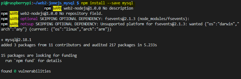 npm install --save mysql
