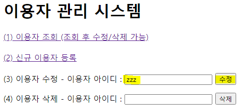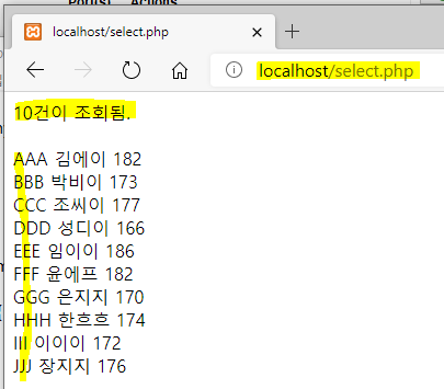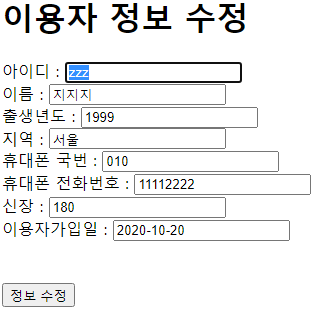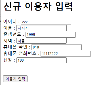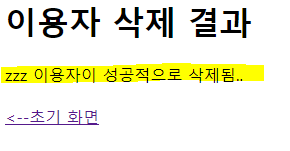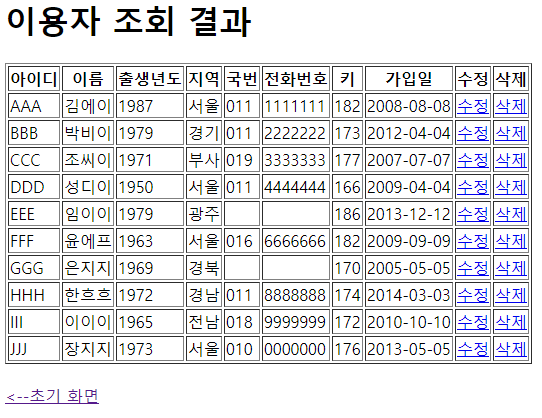 이제 위에 html변수 안에 들어가는 html코드 내용에 result 변수로 받은 sql객채들을 꺼내서 표현해 봅니다.